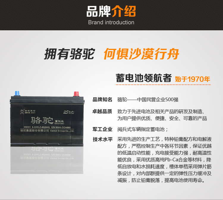 產品名稱 : 駱駝蓄電池12V200Ah 6-QWLZ-200發(fā)電機電瓶 船用鉛酸蓄電池